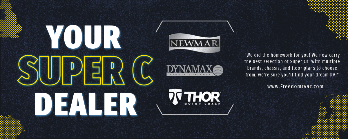 SHOP NOWFor over 50 years, Freedom RV has proudly served the RV community as Arizona's premier family-owned dealership. Located conveniently in Tucson and Marana, AZ, we are open seven days a week, catering to customers not only across Arizona (from Flagstaff to Yuma, Phoenix to Sierra Vista, and Casa Grande) but also throughout the entire Southwest region. RV enthusiasts from neighboring states like New Mexico, Texas, Nevada, California, Utah, and Colorado choose Freedom RV, knowing that a short drive to Tucson or Marana can lead to significant savings on their dream RV.
