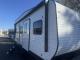 The interior features a convertible dinette and a Murphy bed, providing comfortable sleeping arrangements for up to four people. The rear garage area can accommodate off-road vehicles, and it includes tie-downs to secure your gear during transit. The kitchen is equipped with a refrigerator, microwave, two-burner cooktop, and sink, offering everything needed for meal preparation on the go.